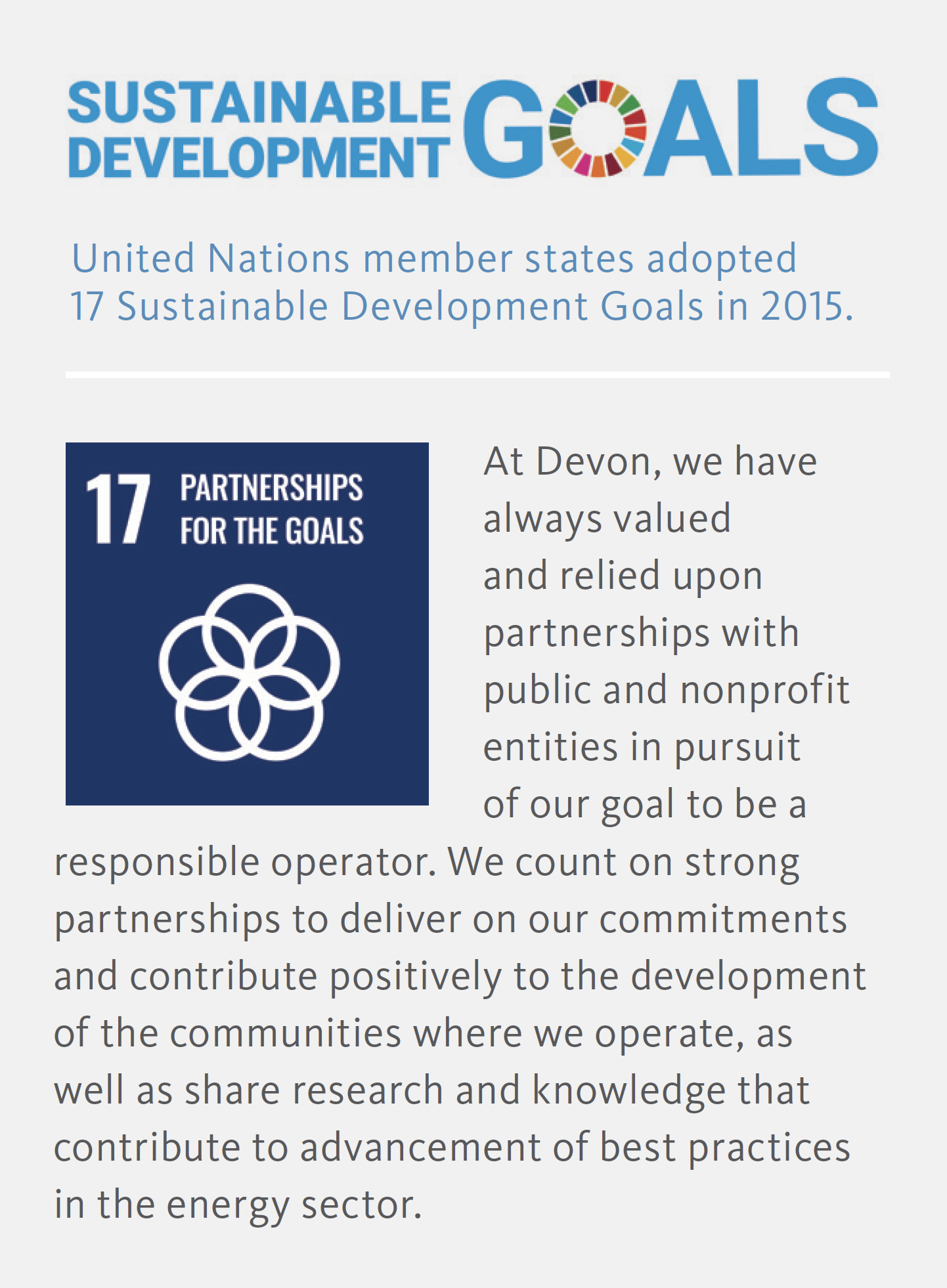 Devon has a strong organization managing our environmental performance. Our executive vice president of exploration and production oversees our environmental programs and performance, which are evaluated by the governance and compensation committees of the Devon board of directors.